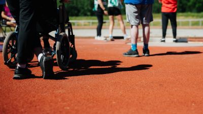 Ledsagare till en ung vuxen kille som simtränar